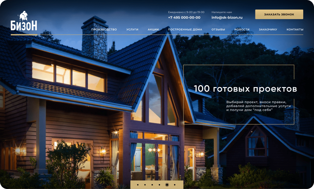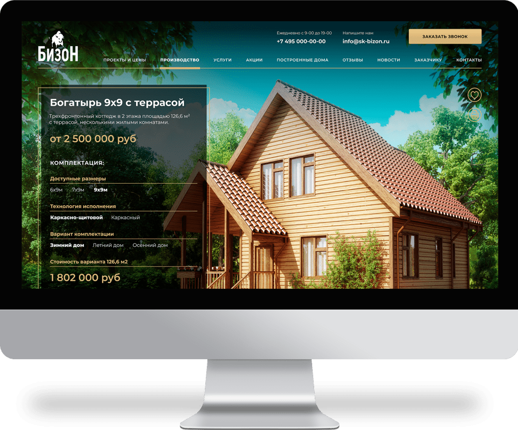 La empresa LLC "SK Bizon" construye viviendas de calidad y accesibles. Su propia base de producción, ubicada en el distrito de Ramenskoye de la región de Moscú, permite controlar la calidad de los materiales y hacer la construcción aún más accesible. La empresa cumple estrictamente con las tecnologías de producción de materiales de construcción y los estándares modernos de construcción de casas y baños, todo esto presentado a través de un sitio web corporativo estructurado, desarrollado para una clara demostración de proyectos, capacidades y materiales.