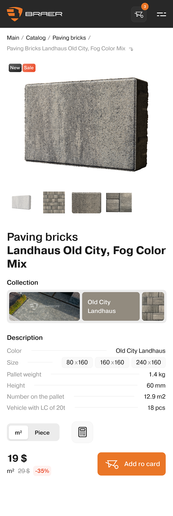 Prestamos especial atención a la colección especial de ladrillos. Creamos un tema oscuro único y un diseño exclusivo para las tarjetas de esta colección, resaltando la exclusividad y calidad premium del producto.