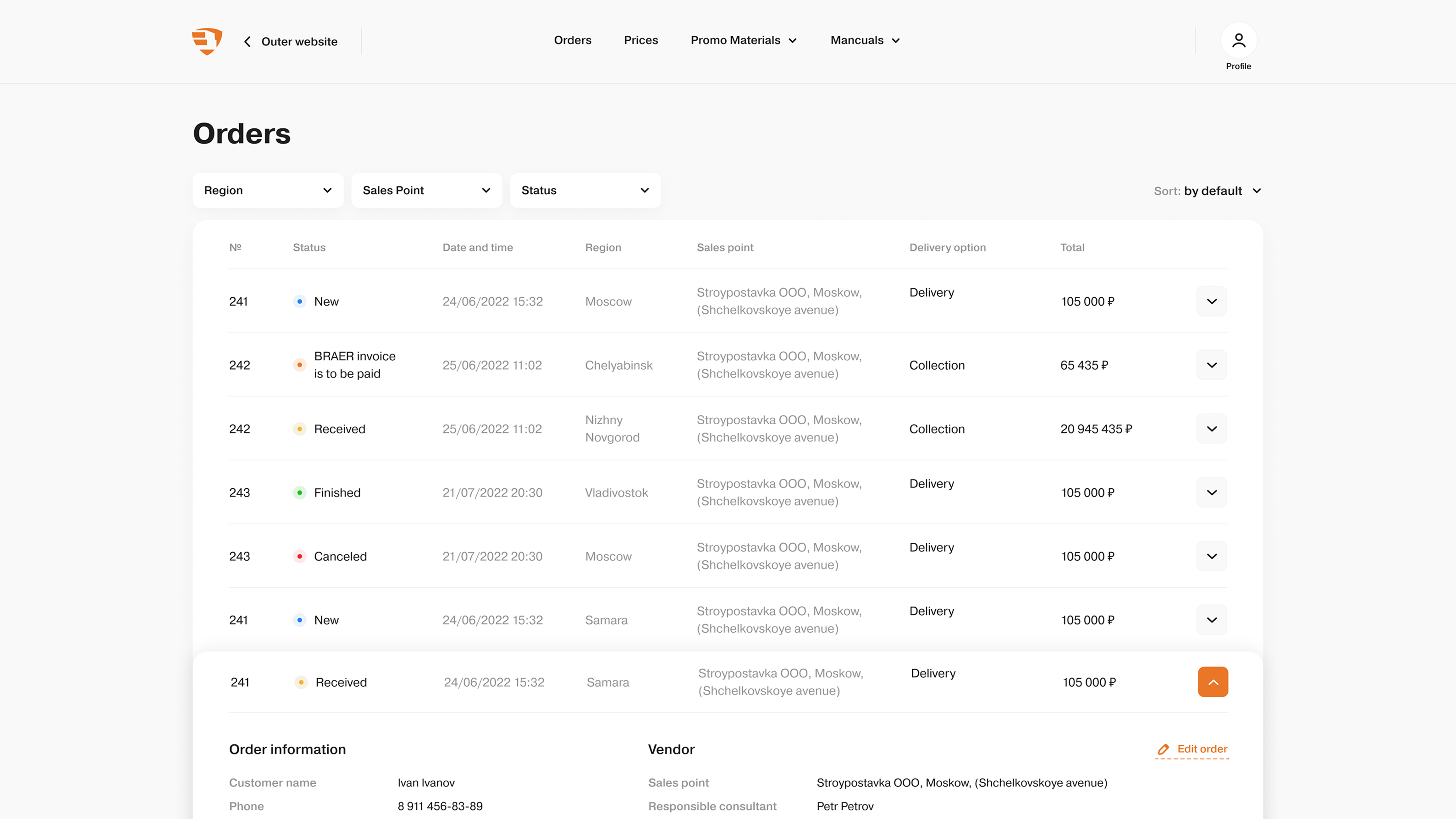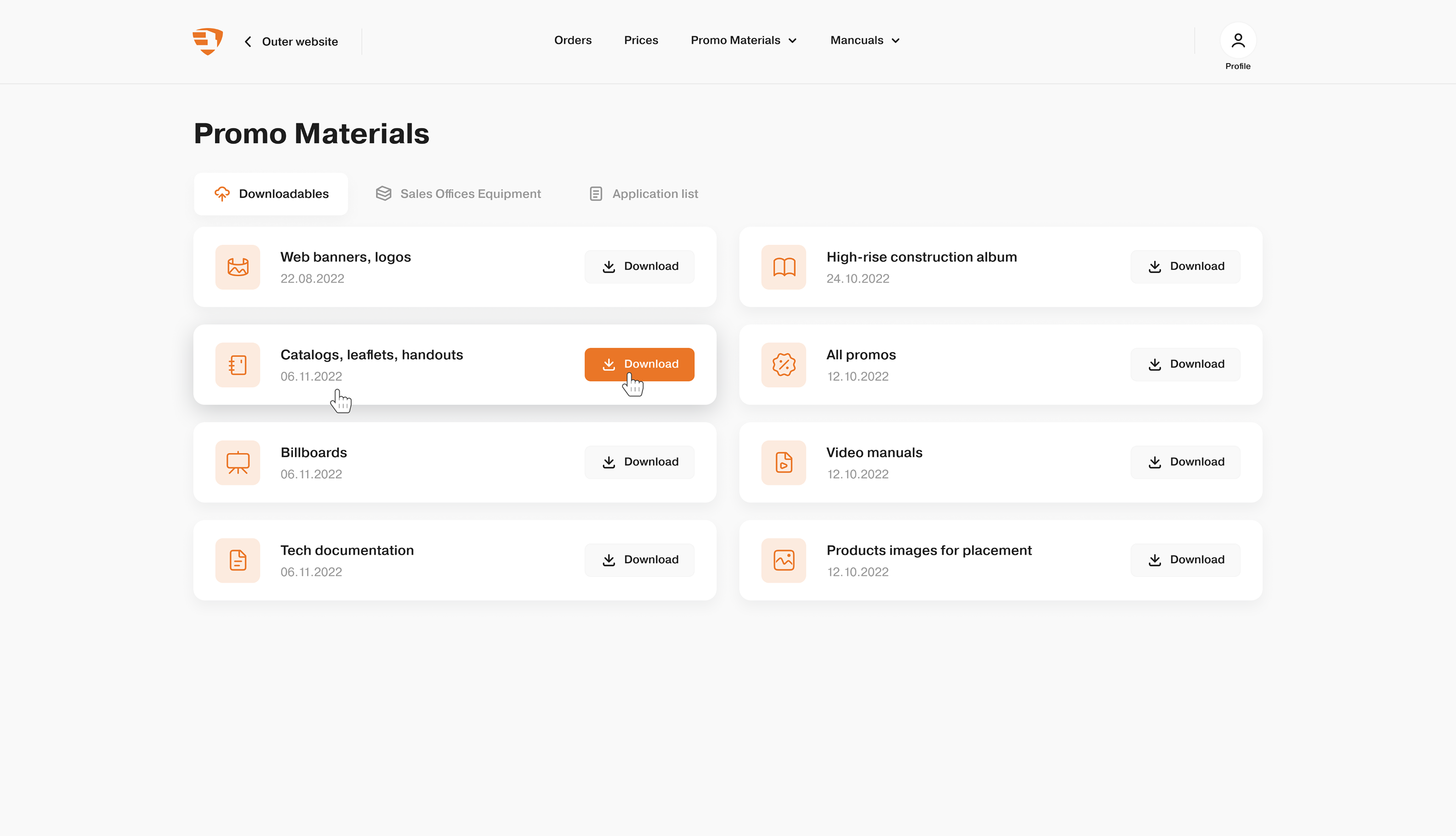 El área de usuario incluye solicitudes de materiales y seguimiento de su estado. Facilitamos el manejo de pedidos para los distribuidores al simplificar los estados de los pedidos y añadir un historial de comunicación con los gestores, entre otros.