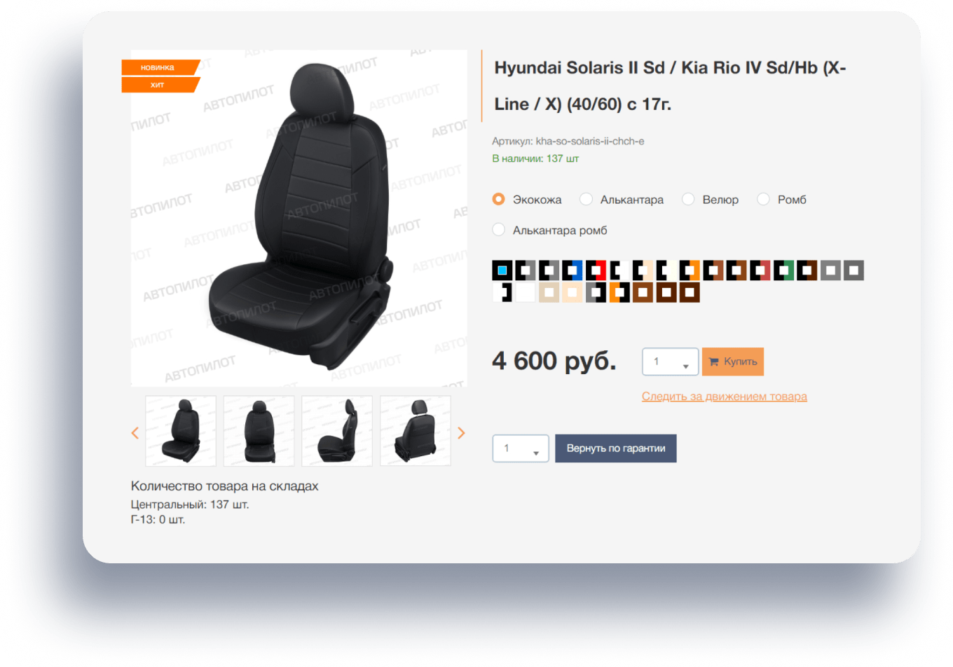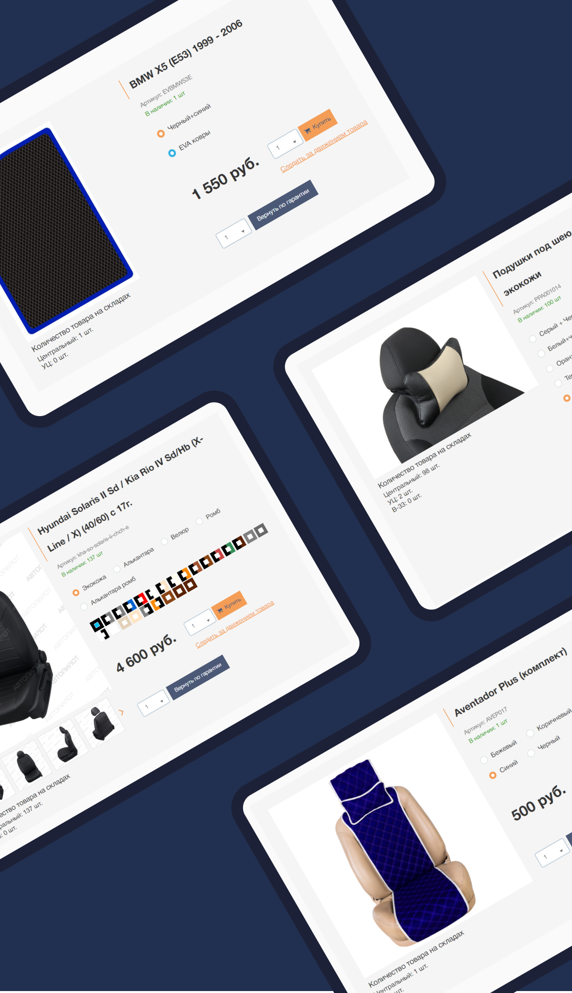 Ampliamos significativamente las capacidades del catálogo: agregamos categorías; implementamos recomendaciones inteligentes basadas en la marca del automóvil. El usuario puede encontrar el producto adecuado en un par de clics, elegir el color, el precio y la cantidad.