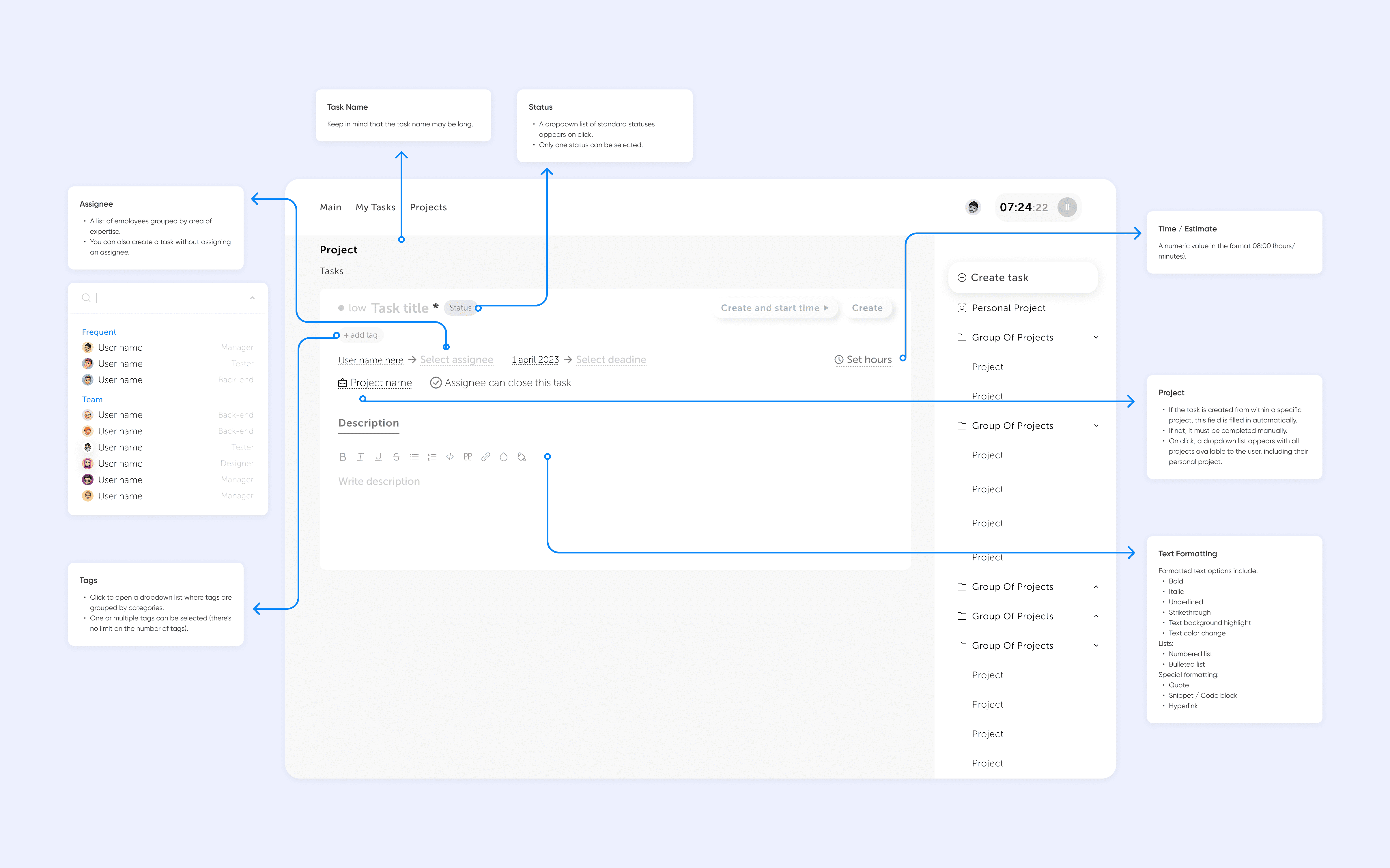 Creamos Taskee como un rastreador multifuncional que combina el registro de tiempo, la gestión de carga y la organización de proyectos en un solo lugar.