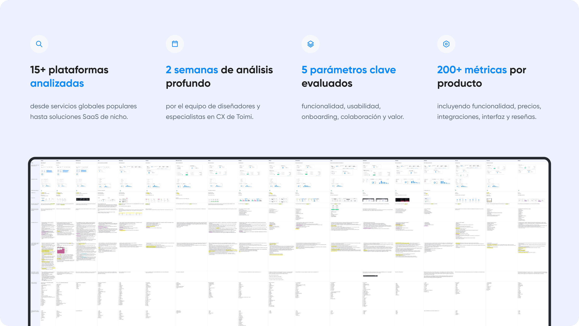 Nuestro equipo de diseñadores, especialistas en CX y analistas estudió servicios como Asana, Trello, Monday.com, Jira, Basecamp, Todoist, ClickUp, Notion, Microsoft To Do, Wrike, Habitica y Zoho. Evaluamos funcionalidad, integraciones, usabilidad y reseñas reales, no solo funciones, sino la experiencia que generan.